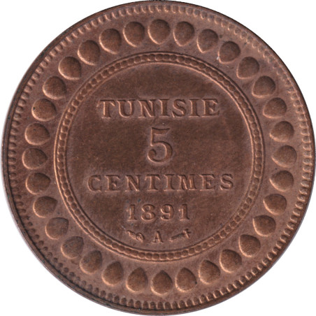 Tunisia - 5 centimes - Ali III - ١٣٠٨ - 1891 (1891) A - No203
